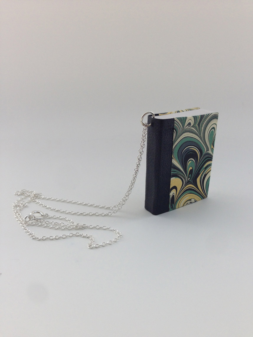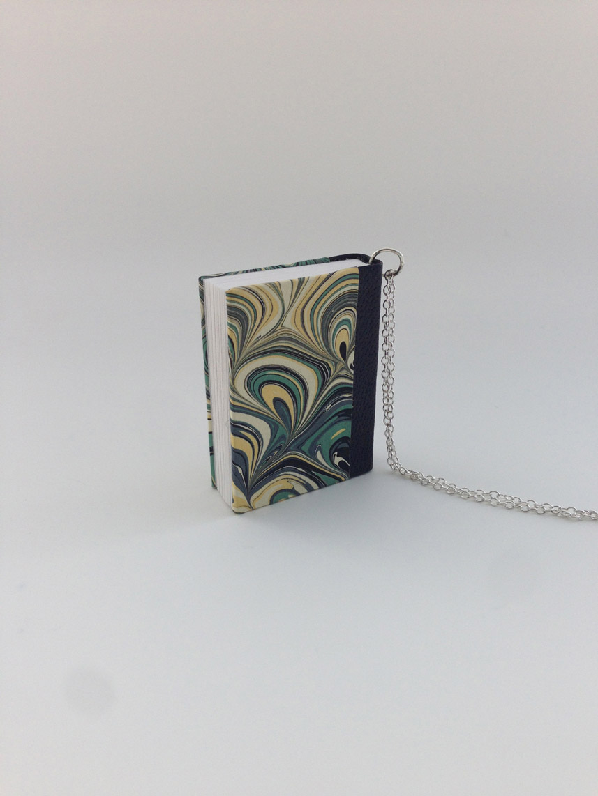 - Bound with hand-marbled paper and coordinating hand-dyed goatskin.