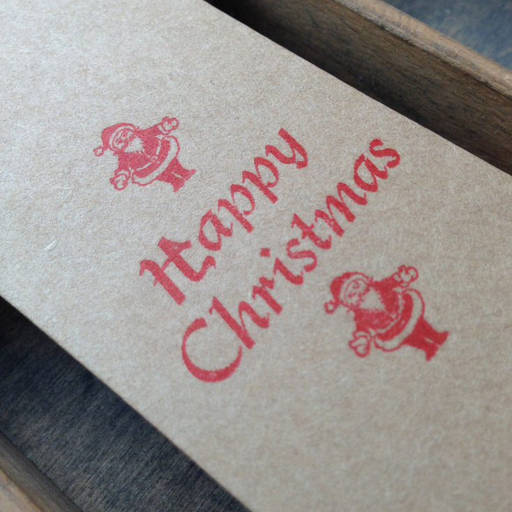 Hand printed tag for Christmas presents.